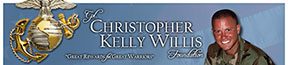 The Willis Foundation. a 501(c)(3) non-profit organization formed in memory and in honor of a beloved brother, son, friend and Marine, is committed to supporting the men and women of our armed services by providing Great rewards for Great Warriors. The mission of the Willis Foundation is to continue to perpetuate the memory of Corporal Christopher Kelly Willis by fostering and contributing to the welfare of those things in life he loved and cared for the most, the world’s children and the United States Marines.